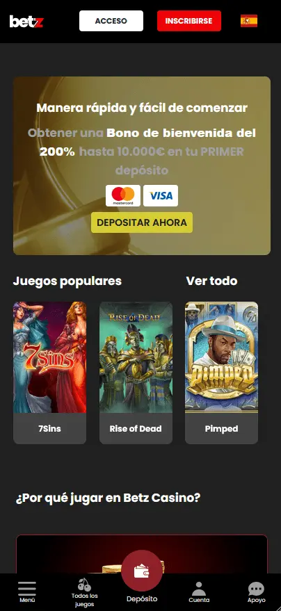 Versión Móvil de Betz Casino