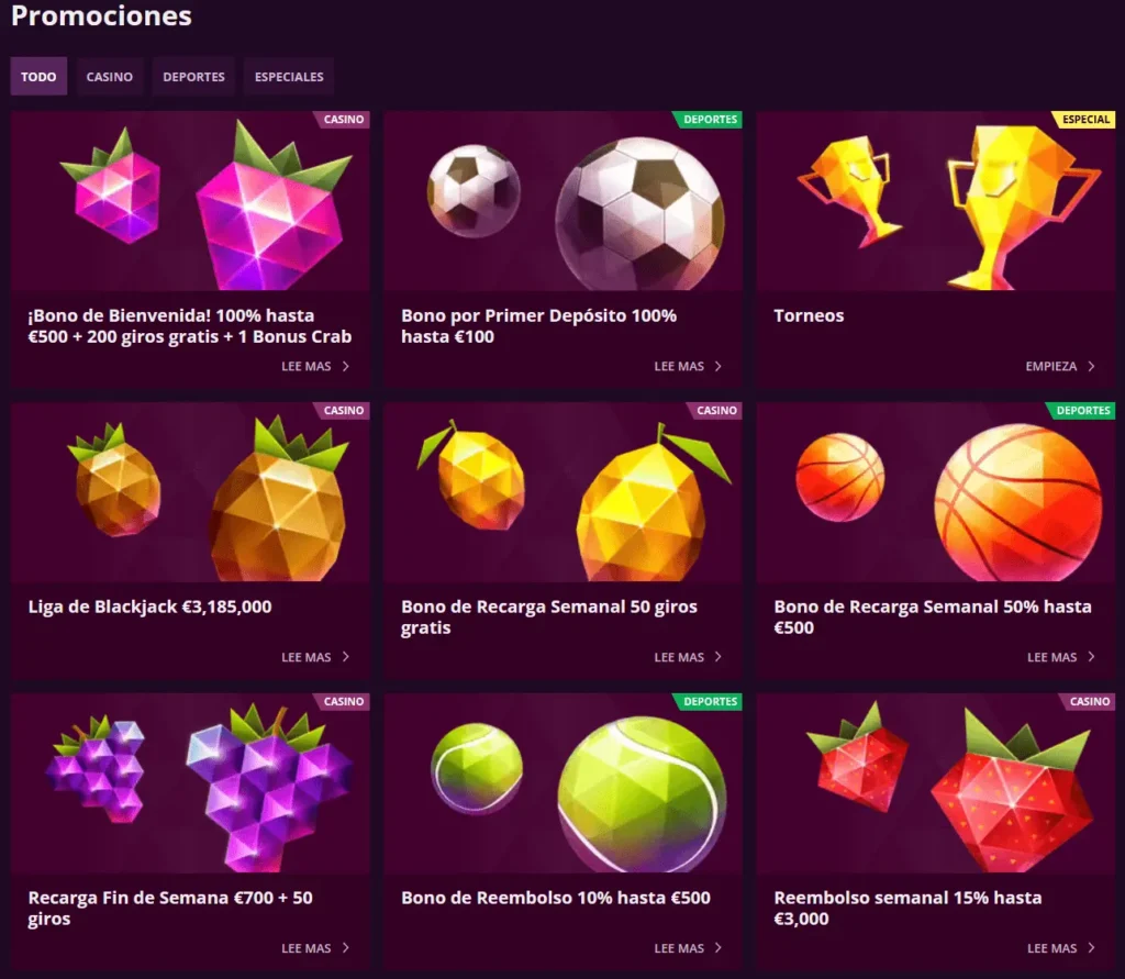 🎁 Bono de bienvenida: 100% de coincidencia hasta €500 y 200 giros gratis, distribuidos a razón de 20 giros por día durante los primeros 10 días.
