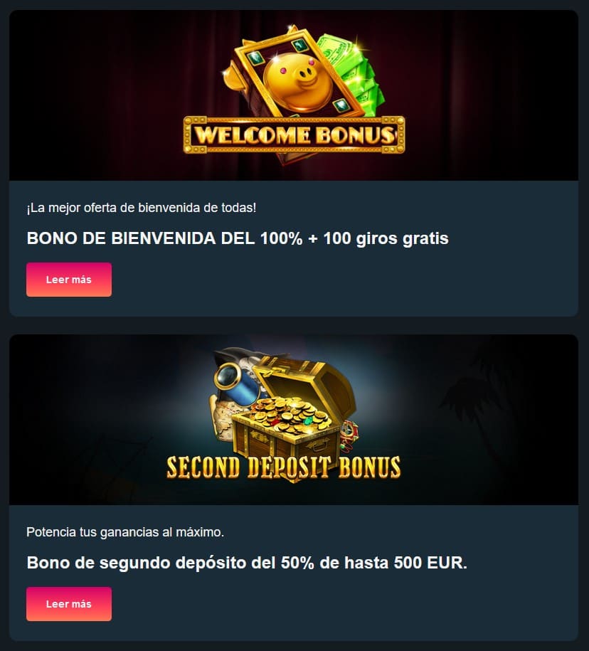 | 🎉 Bono de Bienvenida | Hasta 1.500 € + 100 giros gratis |