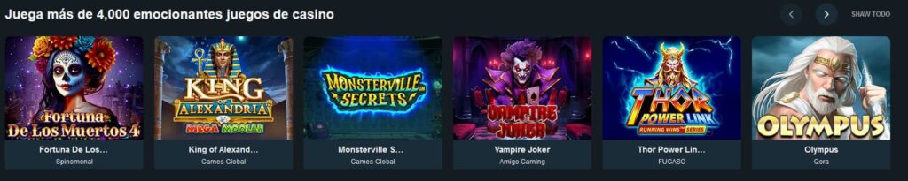 - Tragamonedas: La categoría más popular, con títulos que incluyen jackpots progresivos, tragamonedas con alta RTP y temáticas variadas (mitología, películas, etc.). ¡Ideal para quienes buscan grandes ganancias!